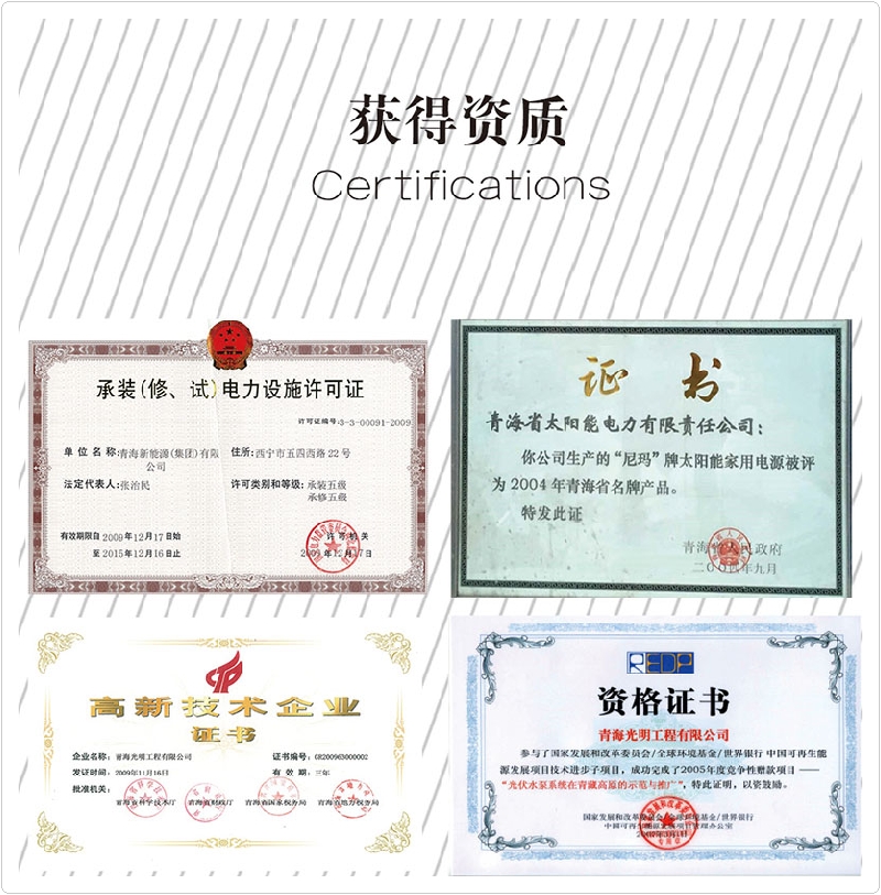 公司先后榮獲“全國(guó)專利先進(jìn)科技研究院”、“全國(guó)各族青年團(tuán)結(jié)進(jìn)步集體”、“青年文明號(hào)”,“青海省模范集體”,“全國(guó)教科文衛(wèi)系統(tǒng)先進(jìn)工會(huì)組織”、全省“學(xué)習(xí)型組織標(biāo)兵”單位、全國(guó)“創(chuàng)新性試點(diǎn)企業(yè)”、連續(xù)三年被中國(guó)農(nóng)業(yè)銀行青海分行授予“AAA信用企業(yè)”和“AAA優(yōu)良客戶”等榮譽(yù)稱號(hào)。公司擁有“尼瑪”牌太陽能。